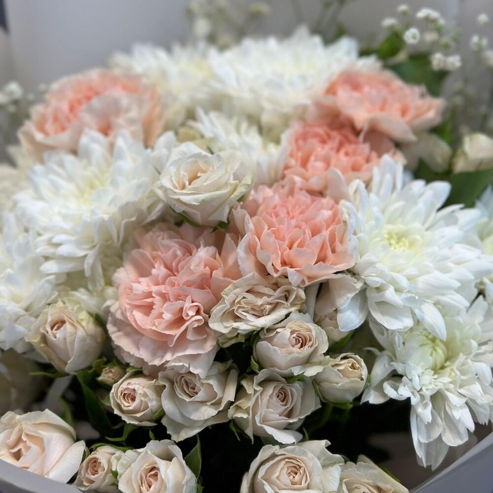 Категорий: Гвоздики, Гипсофила, Диантус, Кустовые розы, Розы, Хризантемы, Хризантемы кустовые