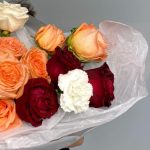 Гвоздики, Пионовидные розы, Розы