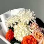 Альстромерии, Гвоздики, Кустовые розы, Лизиантусы, Розы, Хризантемы