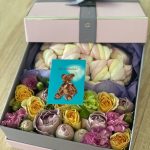 “Атлас☁️” – цветочная композиция с зефиром в деревянном ящике