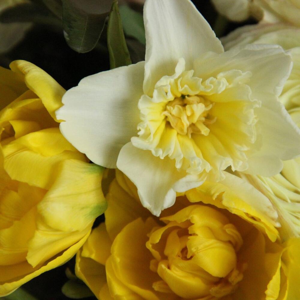 Ароматный, весенний букет с солнечным настроением.Букет приедет в подарочной коробке, с рекомендациями по уходу за цветами.При необходимости, если букет с нежными цветами или ему предстоит весомое время в дороге – то цветы мы отравляем на воде, останется лишь аккуратно снять кулёчек с водой и поставить букет в подходящую вазу.К каждому букету мы подписываем открытку с вашим посланием – эта услуга, так же в подарок.