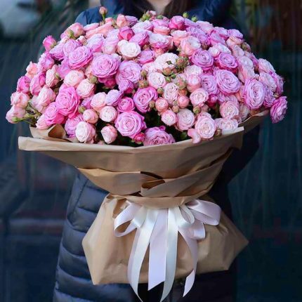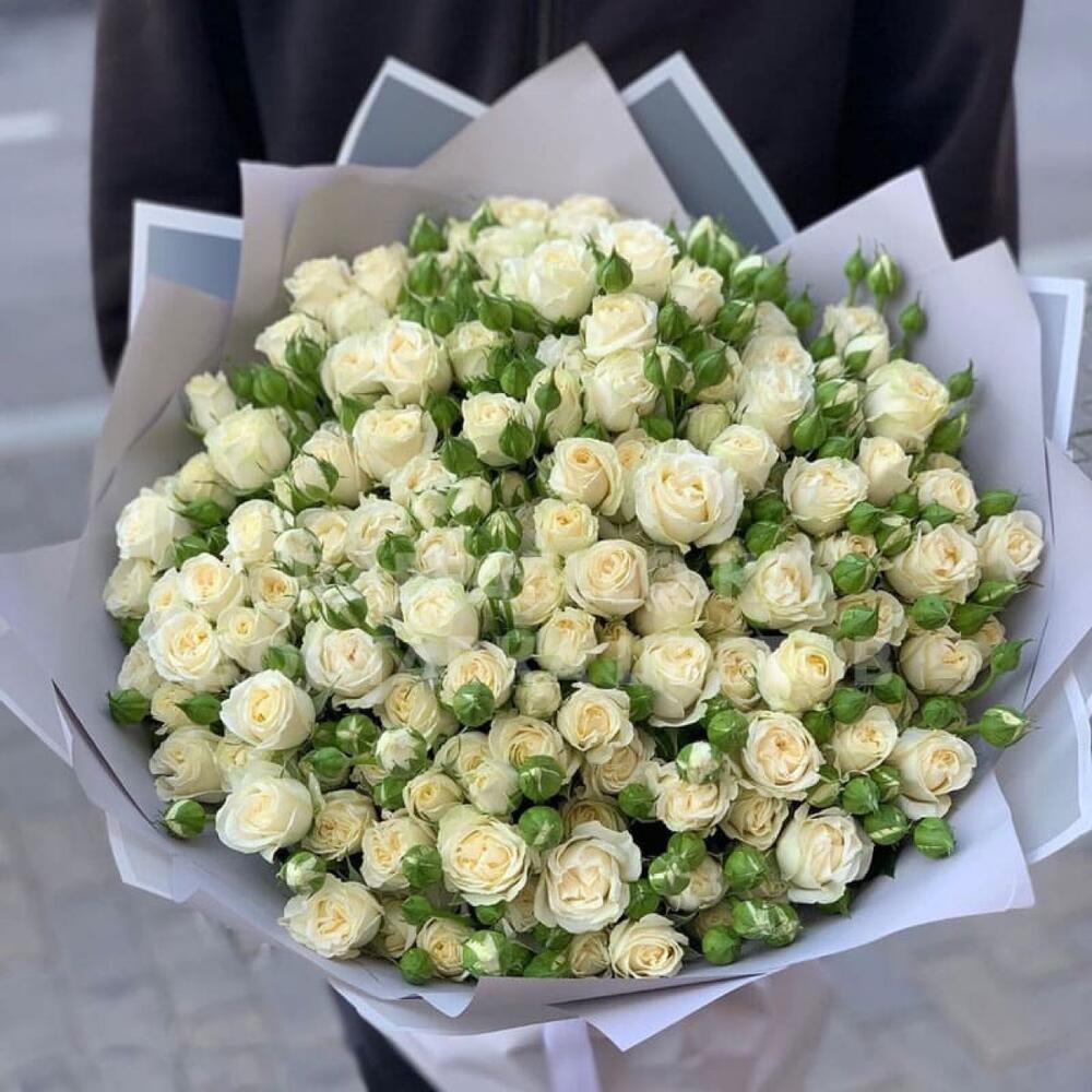 Спрей роза – 35 шт. Упаковка дизайнерская – 3 шт. Открыточка с вашими пожеланиями – 1 шт.