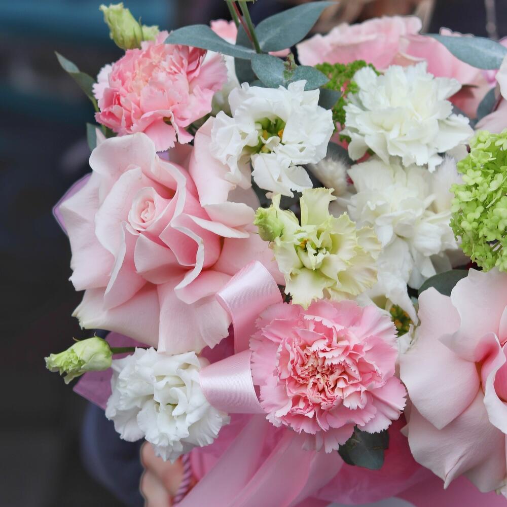 Категории: Гвоздики, Лизиантусы, Розы