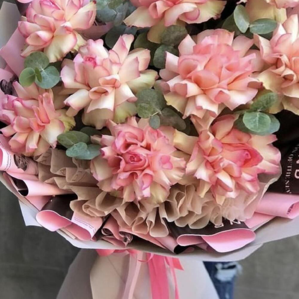 Гвоздики, Кустовые розы, Лизиантусы, Пионовидные розы, Розы