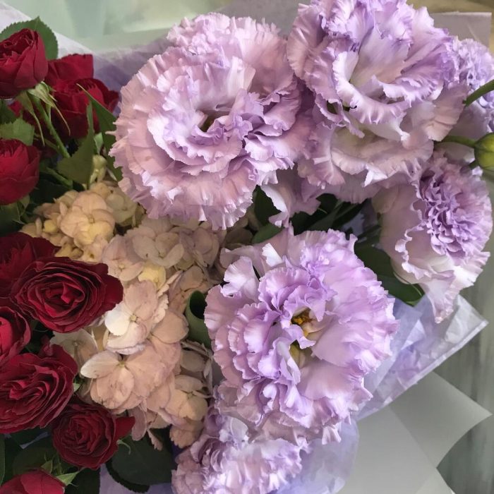 Гвоздики, Кустовые розы, Лизиантусы, Пионовидные розы, Розы