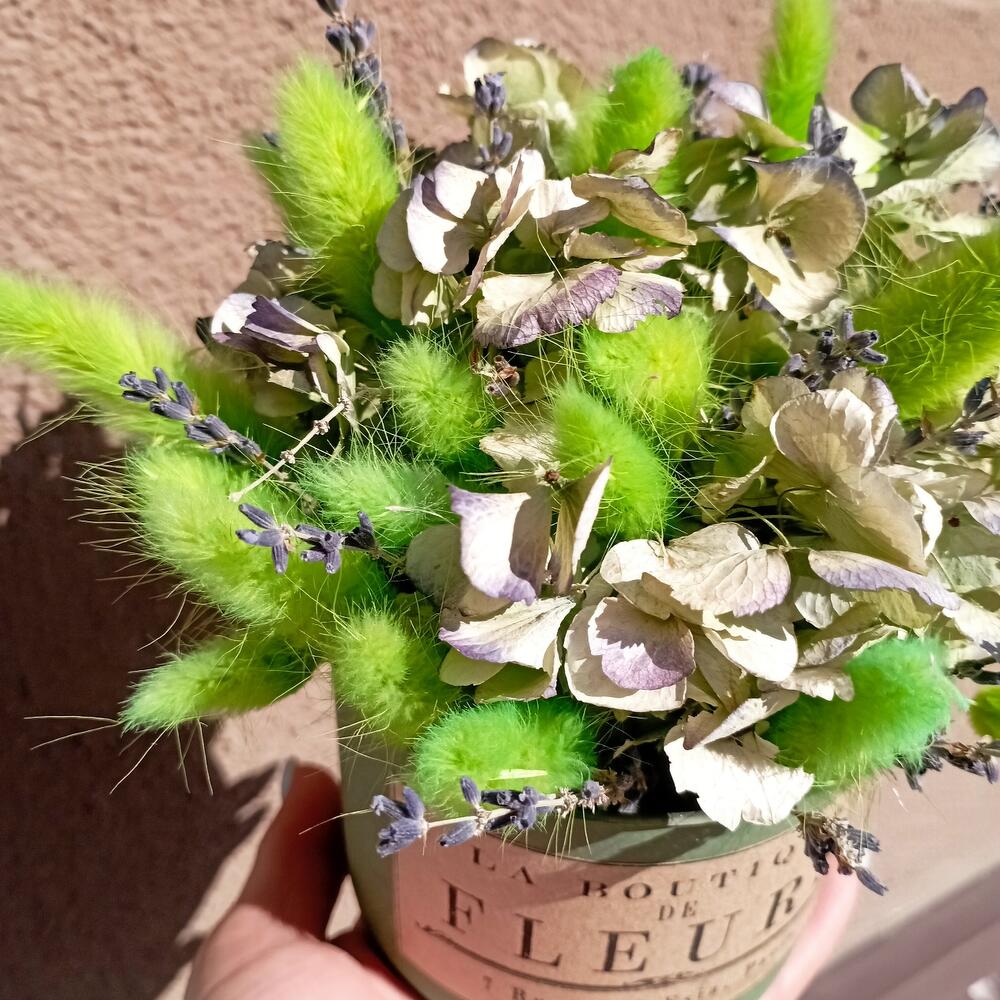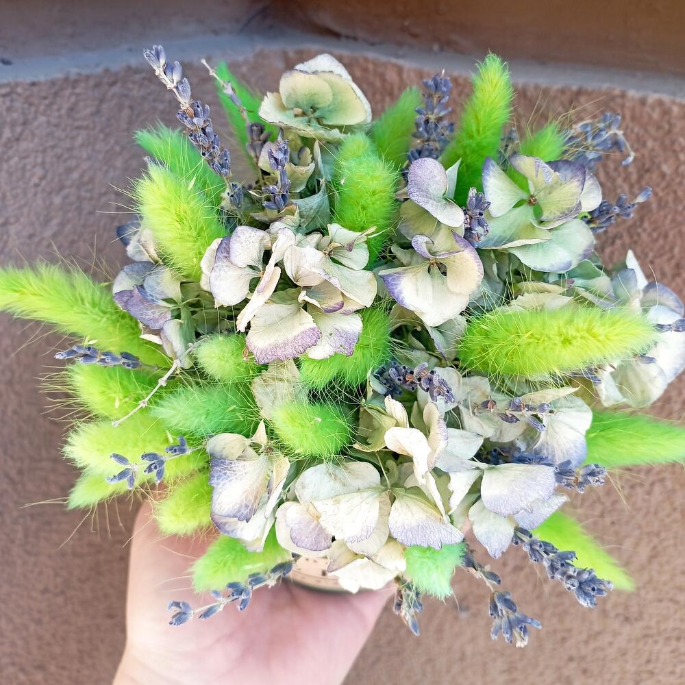 Композиция с лавандой, лагурусом и стабилизированной гортензией