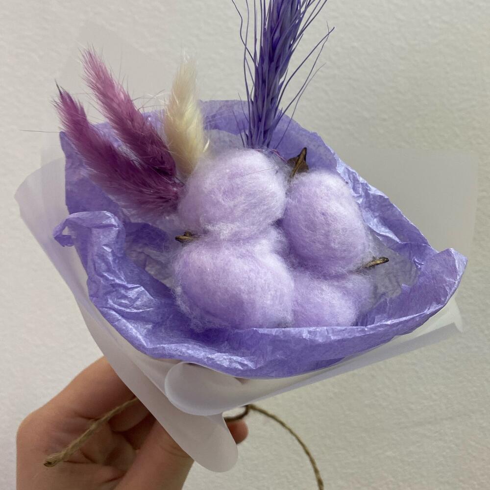 Хлопок – 1 шт.Колосок – 1 шт.Лагурус – 3 шт.Авторская упаковка – 1 шт.Открыточка с вашими пожеланиями – 1 шт.
