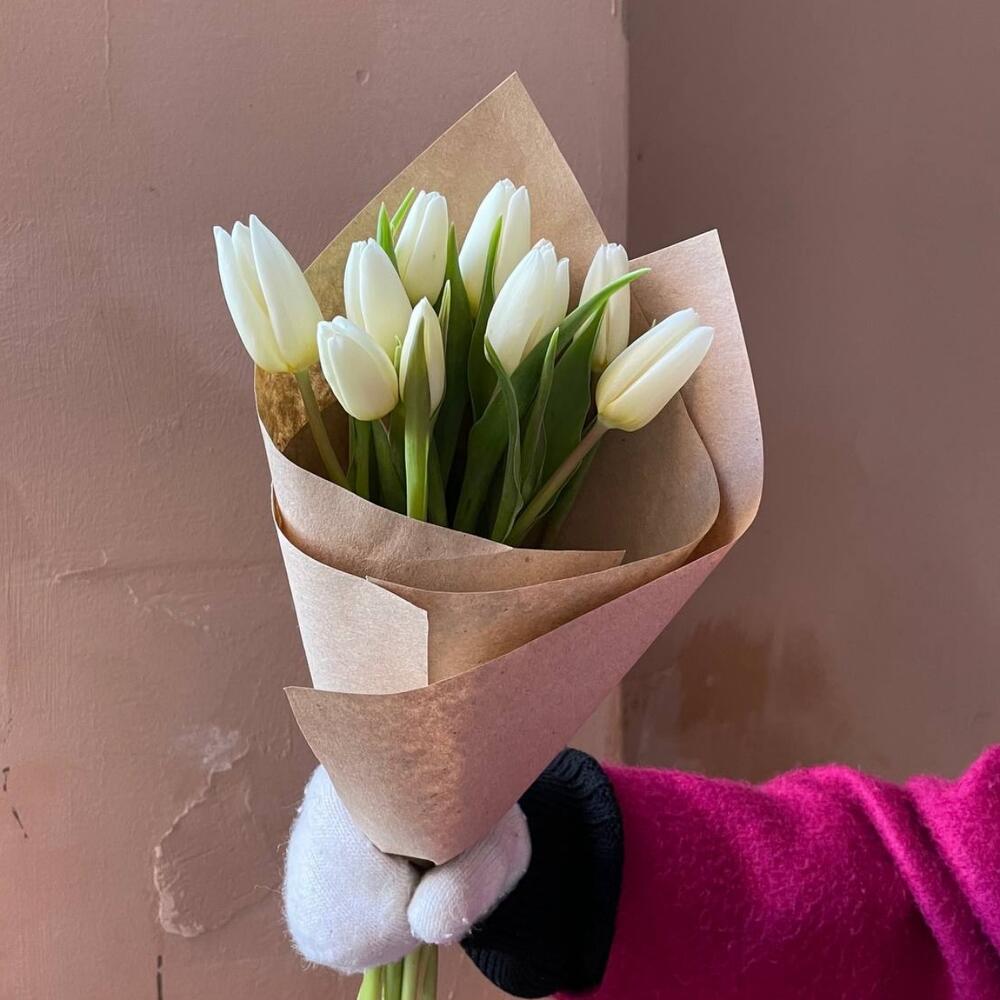 Крафтовая упаковка – 1 шт.Белый тюльпан – 11 шт.